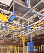 ITZコンベヤは、中荷重部品の吊り下げ搬送に最適な角チューブタイプのコンベヤです。